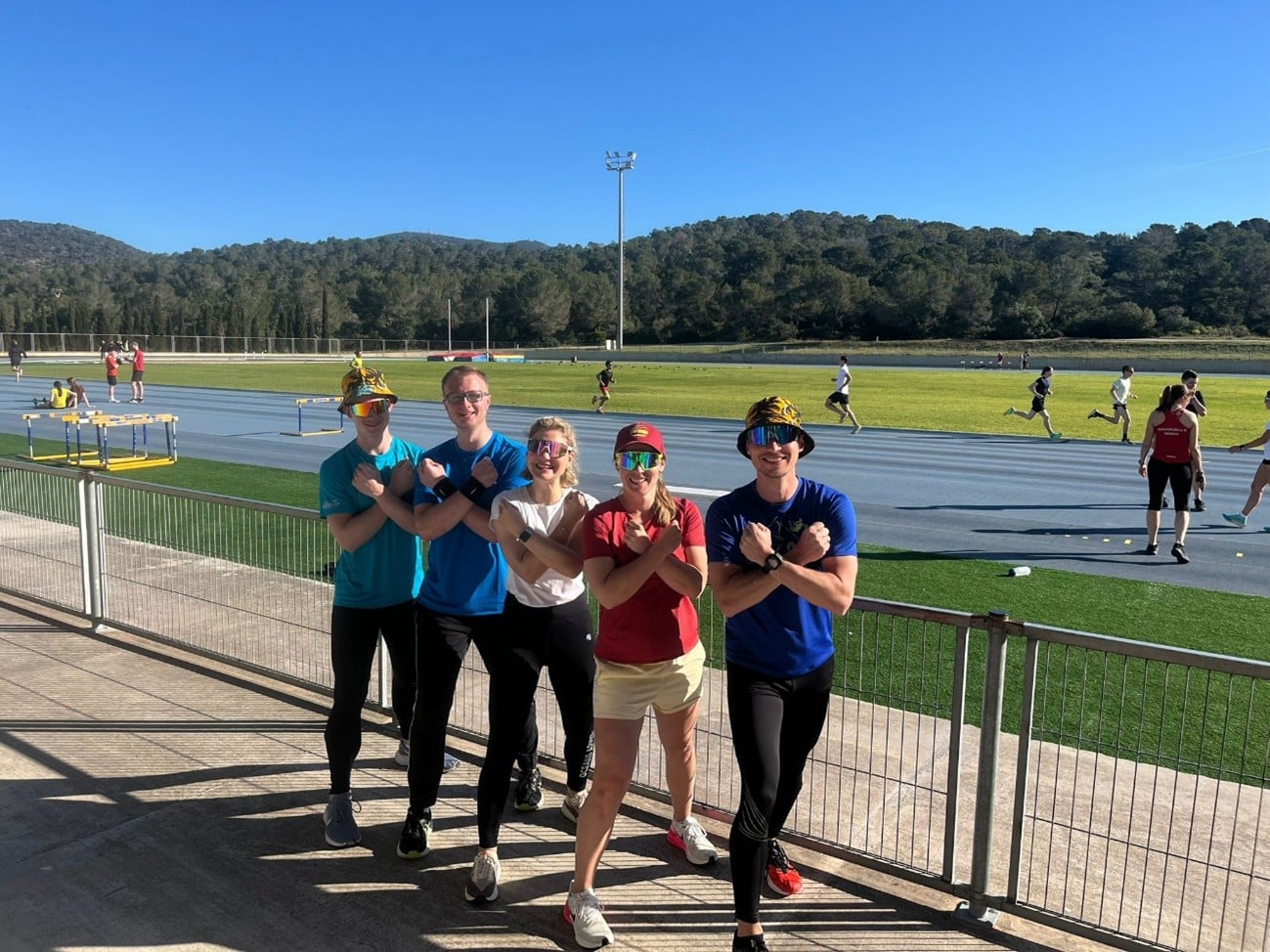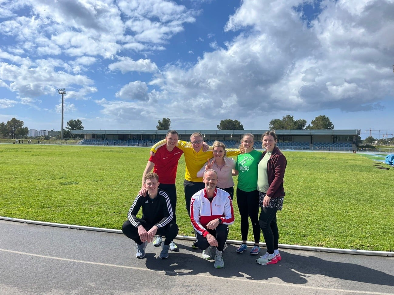 Am Samstag ging es schon früh los, um 9 Uhr trafen sich die Athletinnen und Athleten am Flughafen in Karlsruhe, von dort aus ging es nach Mallorca und anschließend mit dem Bus weiter nach Palmanova zur Unterkunft. Nachdem diese bezogen war, ging es direkt los zur Erkundung der Trainingsstätten für die kommenden Tage. Einerseits in das 15 Minuten entfernte Stadion „Pista d’Atletisme de Calvià“, das neben einer 400-m-Tartanbahn, einer 60-m-Sprintbahn und einem Kraftraum, zusätzlich über eine 1 km lange Cross-Strecke sowie zwei Rampen mit unterschiedlichen Steigungen verfügt und andererseits zum 10 Minuten entfernten Strand „Palmanova Beach“.